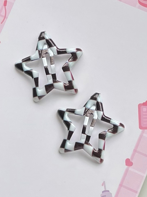 1 Stück sommerliche karierte Stern-Haarspangen