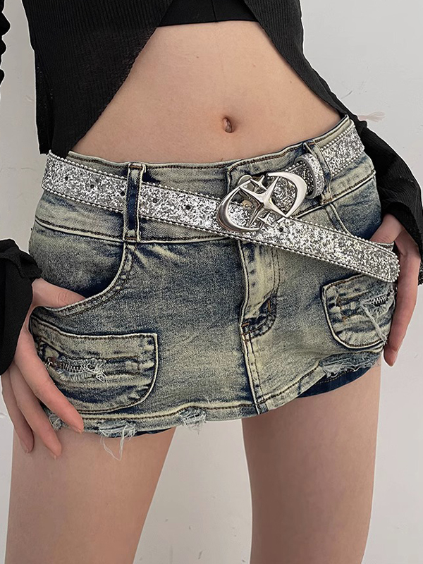 Y2K-Gürtel mit glitzernder Pailletten-Metallschnalle