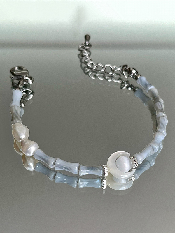 Verstellbares Gliederarmband mit Blumenanhänger aus Jadeimitat