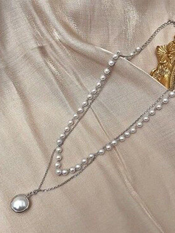 Doppellagige Faux-Perlenkette mit Strass-Charme