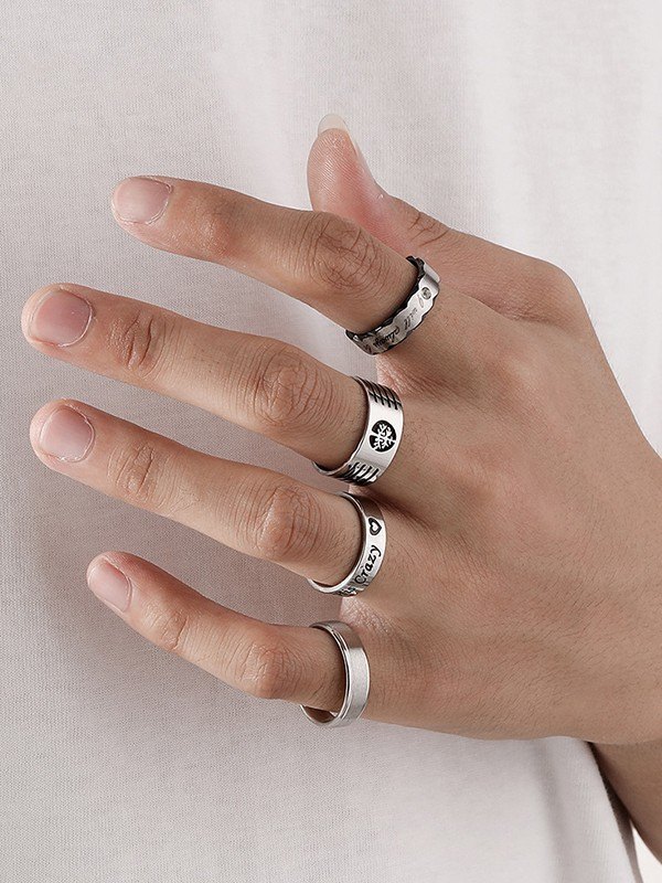 4-teiliges Ring-Set mit geschnitzten Buchstabenmustern für Herren