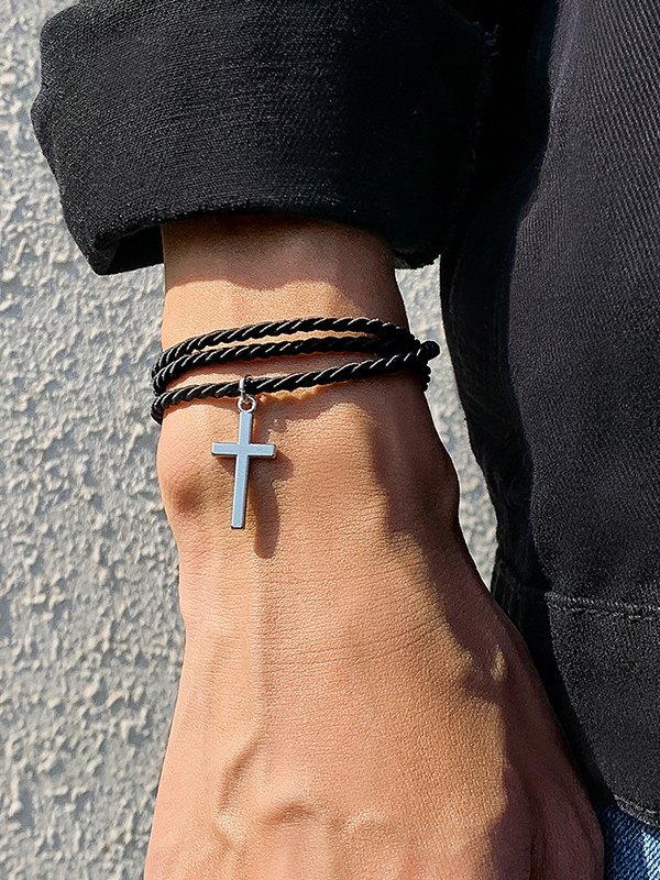 Mehrschichtiges Seilarmband mit Kreuzanhänger für Herren