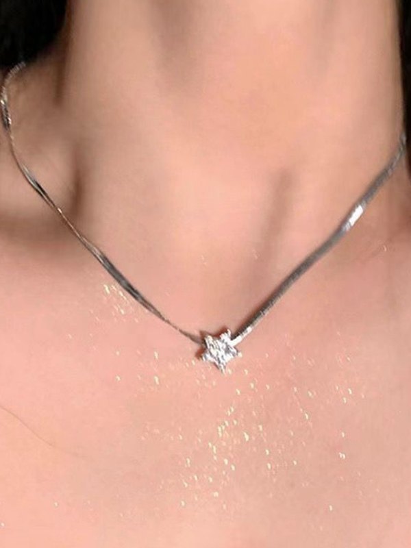 Pentagramm-Zirkon-Schlüsselbein-Halskette