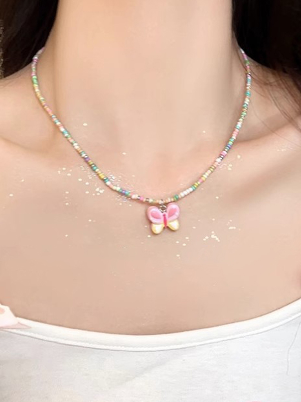 1 Stück bunte Perlen-Schmetterlings-Halskette
