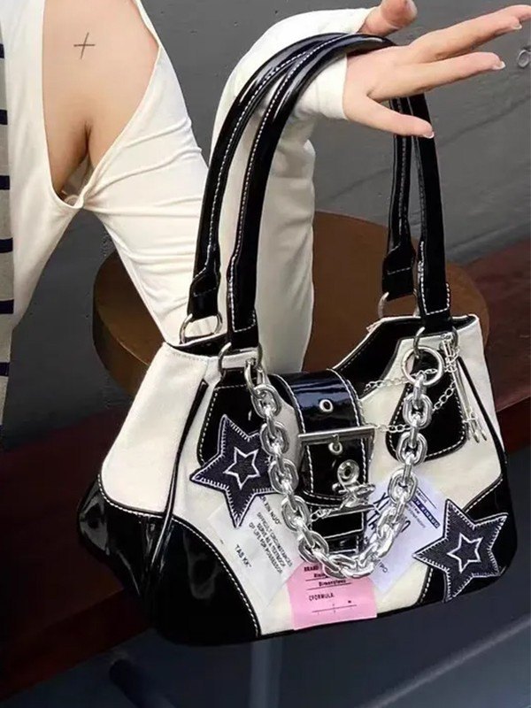 Canvas-Tasche mit kontrastierendem Stern-Print