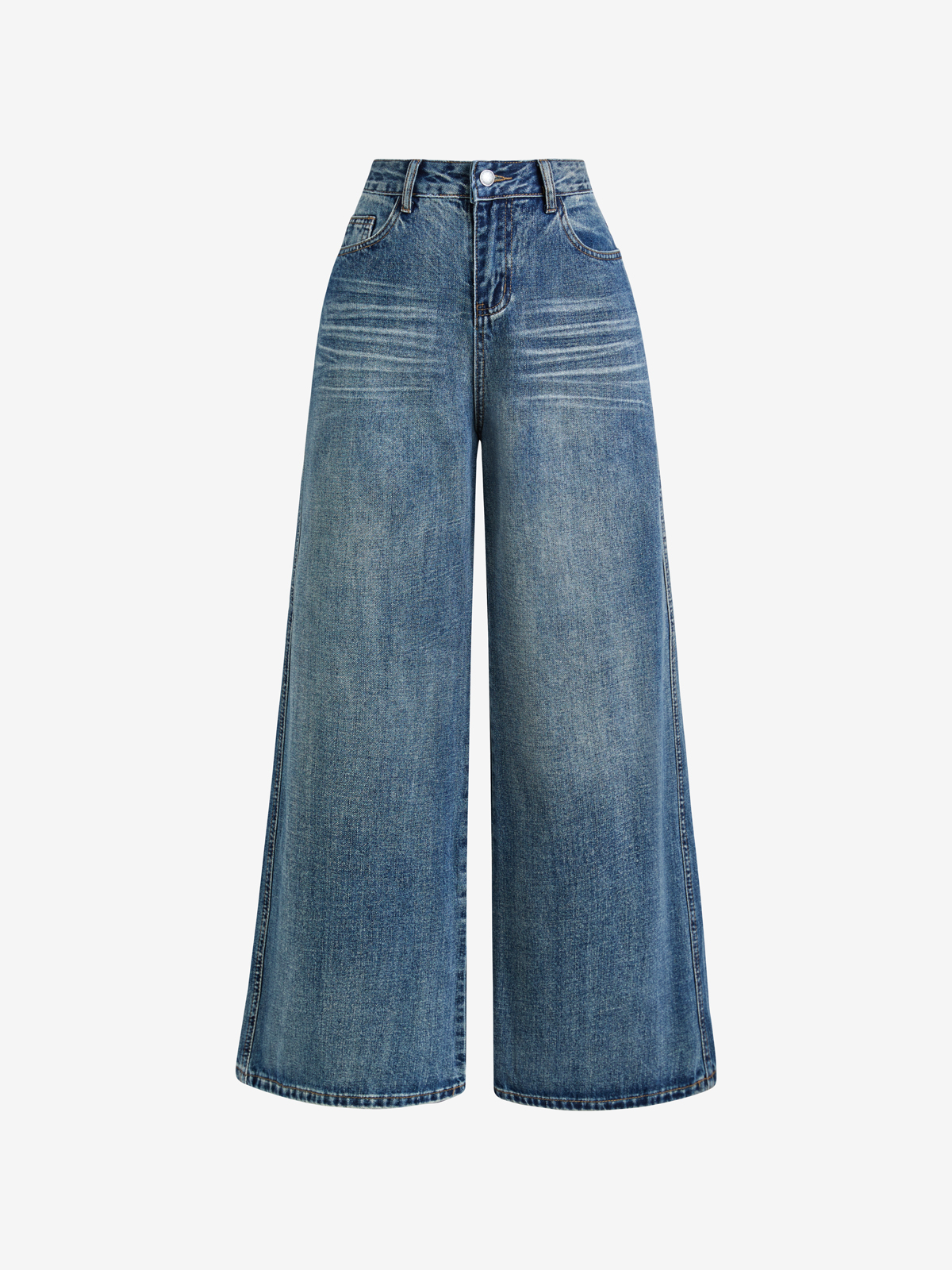 Weite Jeans mit ausgewaschenem Saum und weitem Bein