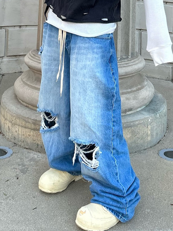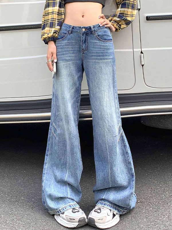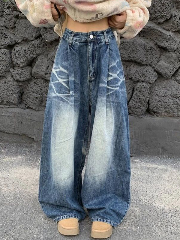 Persönlichkeit gewaschene Taille Retro Loose Jeans