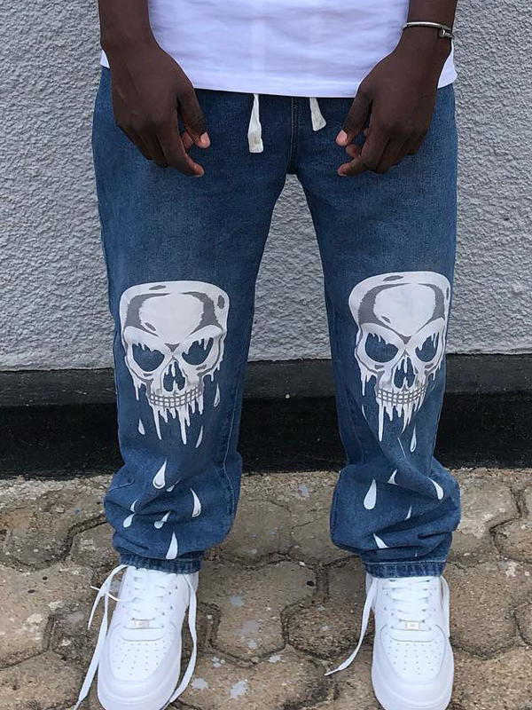 Gerade geschnittene Jeans für Herren mit Flying Dog-Print