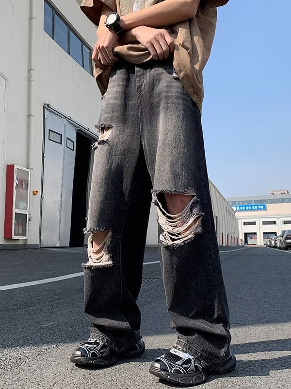Herren-Jeans im Vintage-Stil, verwaschen, zerrissen, locker
