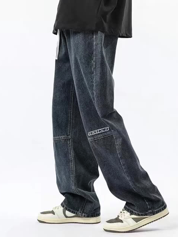 Lose Herrenjeans mit Buchstabenstickerei und Kordelzug