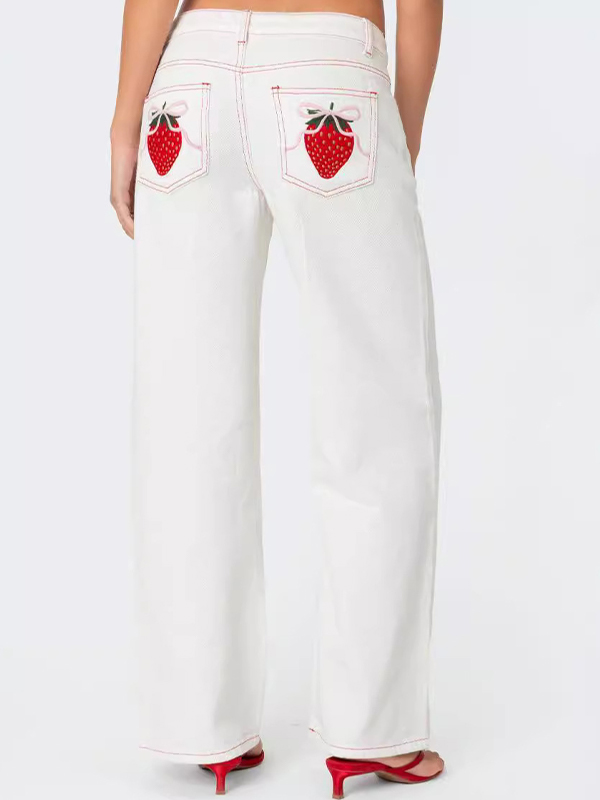 Schleife Erdbeere süße Aufkleber Boyfriend Jeans