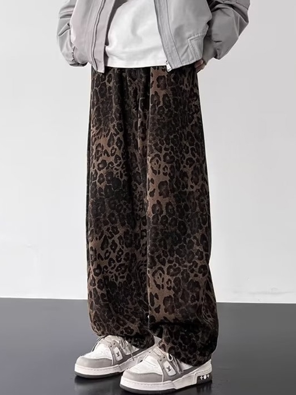 Lose Jeans für Herren im amerikanischen Retro-Nischen-Stil mit Leopardenmuster
