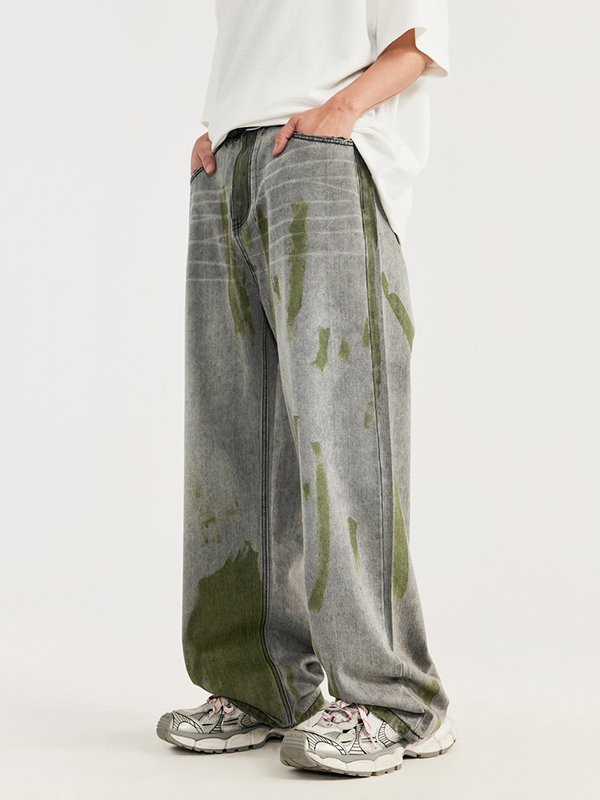 Lockere Jeans mit weitem Bein und handbemalten Kontrastfarben