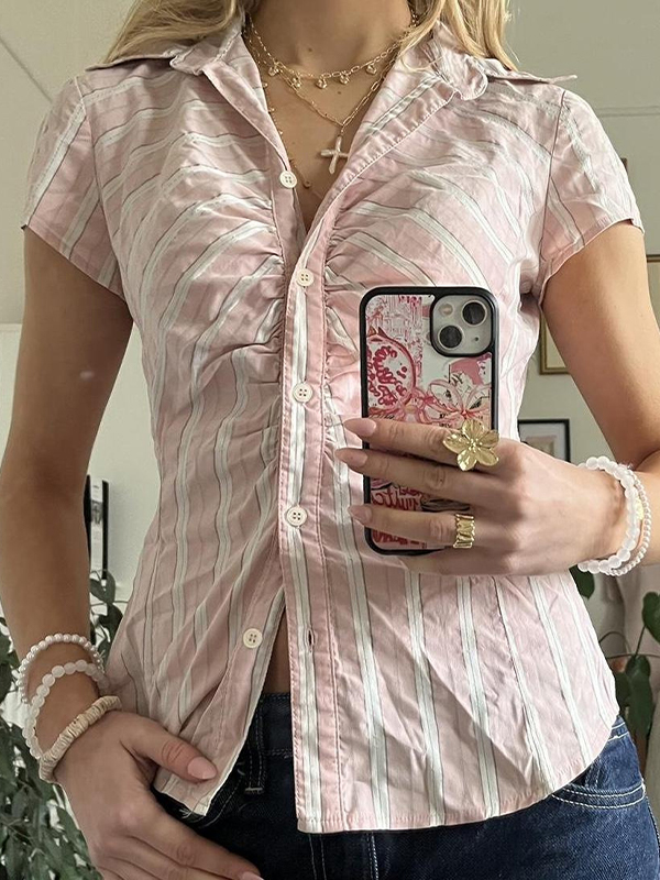 Slim-Fit-Hemd im akademischen Stil mit Nieten und Taillenbetonung