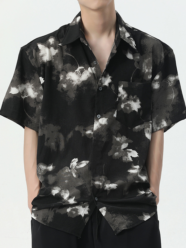 Kurzarmshirt mit Batikmuster und Blumenmuster im Retro-Look