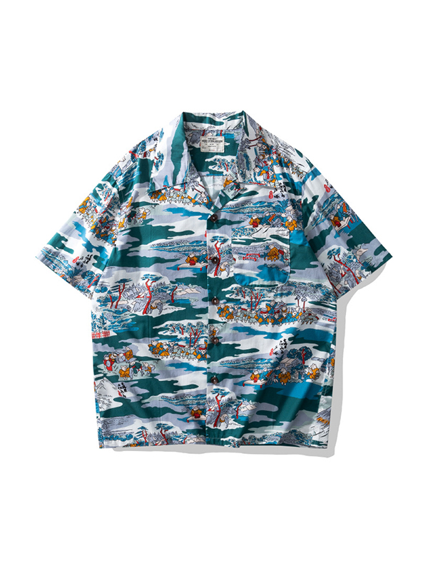 Button-Down-Hemd mit Cartoon-Graffiti-Print für Herren