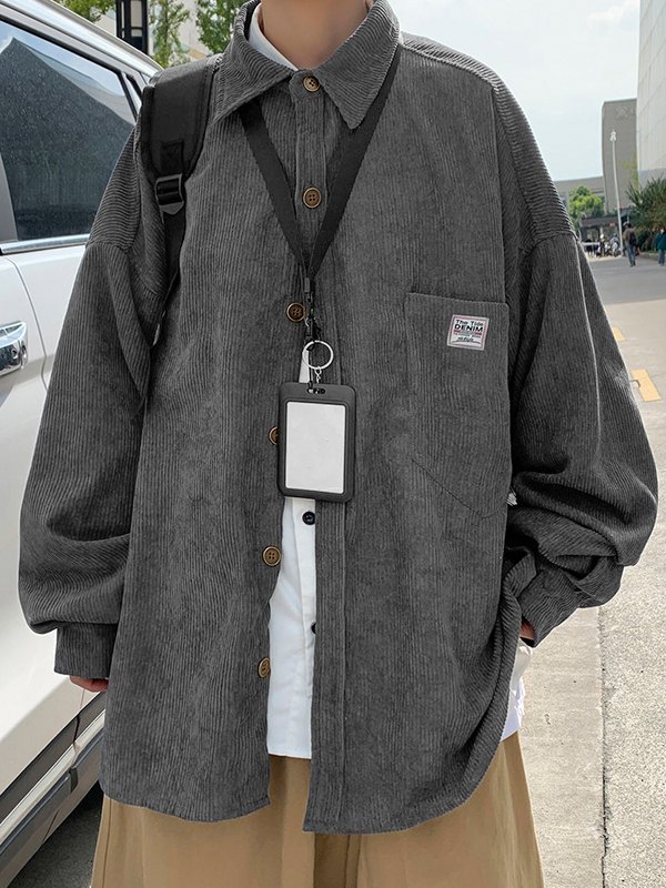 Cord-Langarmhemd mit Patch-Detail für Herren