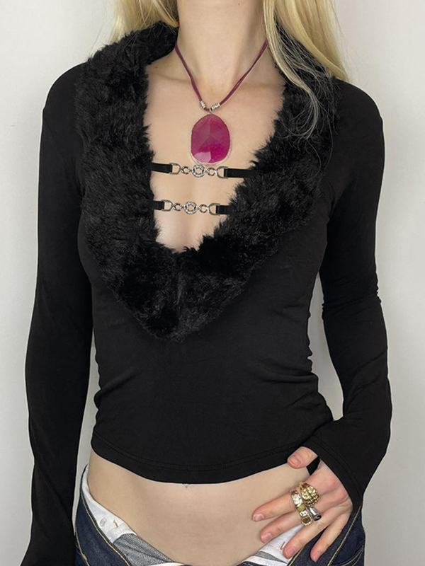 Einfarbige Langarm-Strickwaren