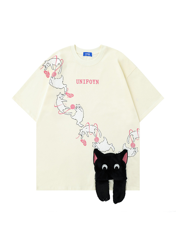 Übergroßes kurzärmliges T-Shirt mit Katzen-Print