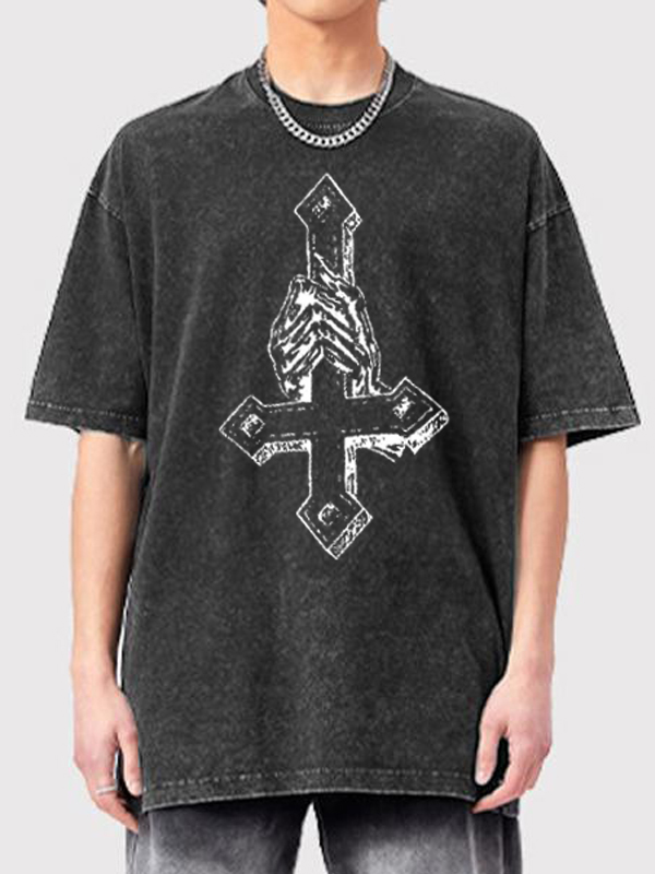 Übergroßes, kurzärmliges T-Shirt mit Kreuz-Print für Herren