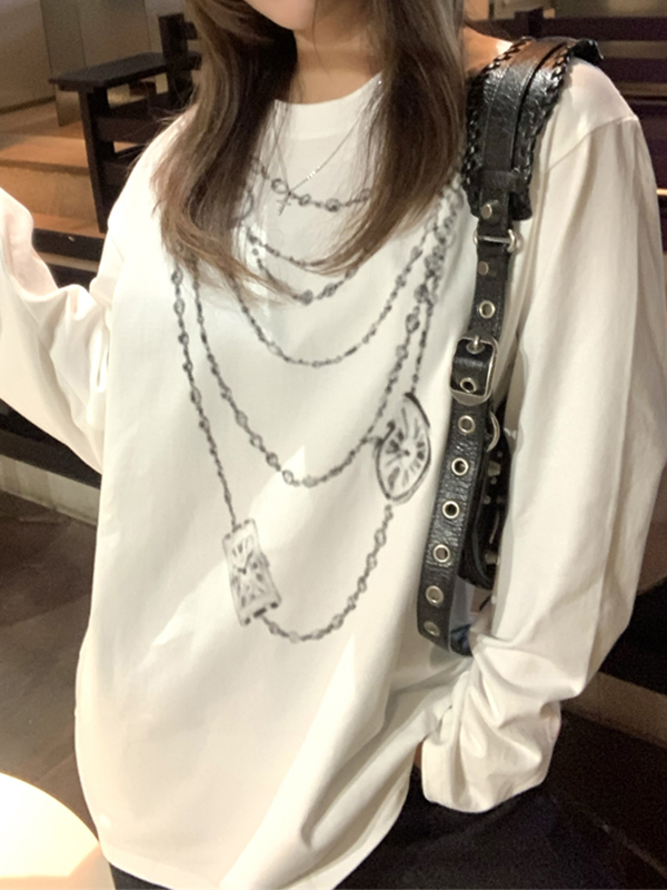 Chain Print Oversized Long Sleeve Tee