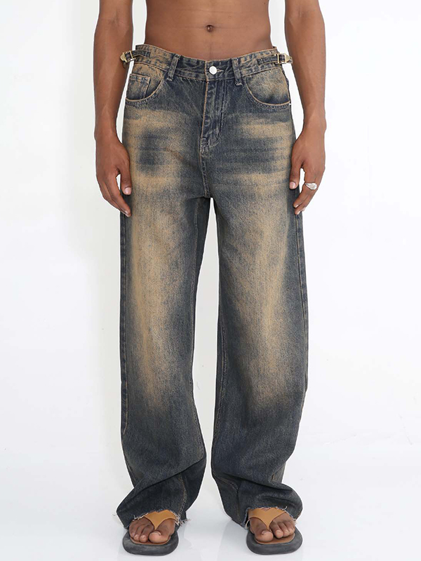 Lose Jeans für Herren im Vintage-Stil mit zerrissenen Aufnähern in Kontrastfarbe