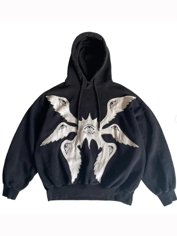 Übergroßer Kapuzenpullover mit „Street Eyes“-Stickerei für Herren