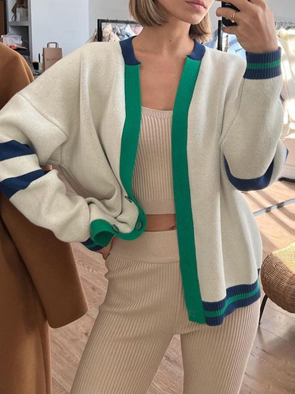 Modischer Cardigan mit kontrastierenden Farben und lockerer Passform