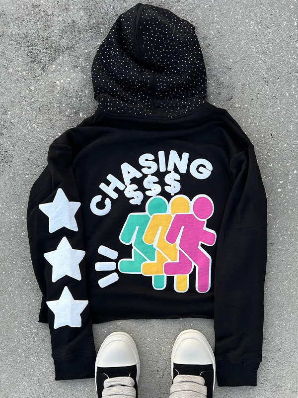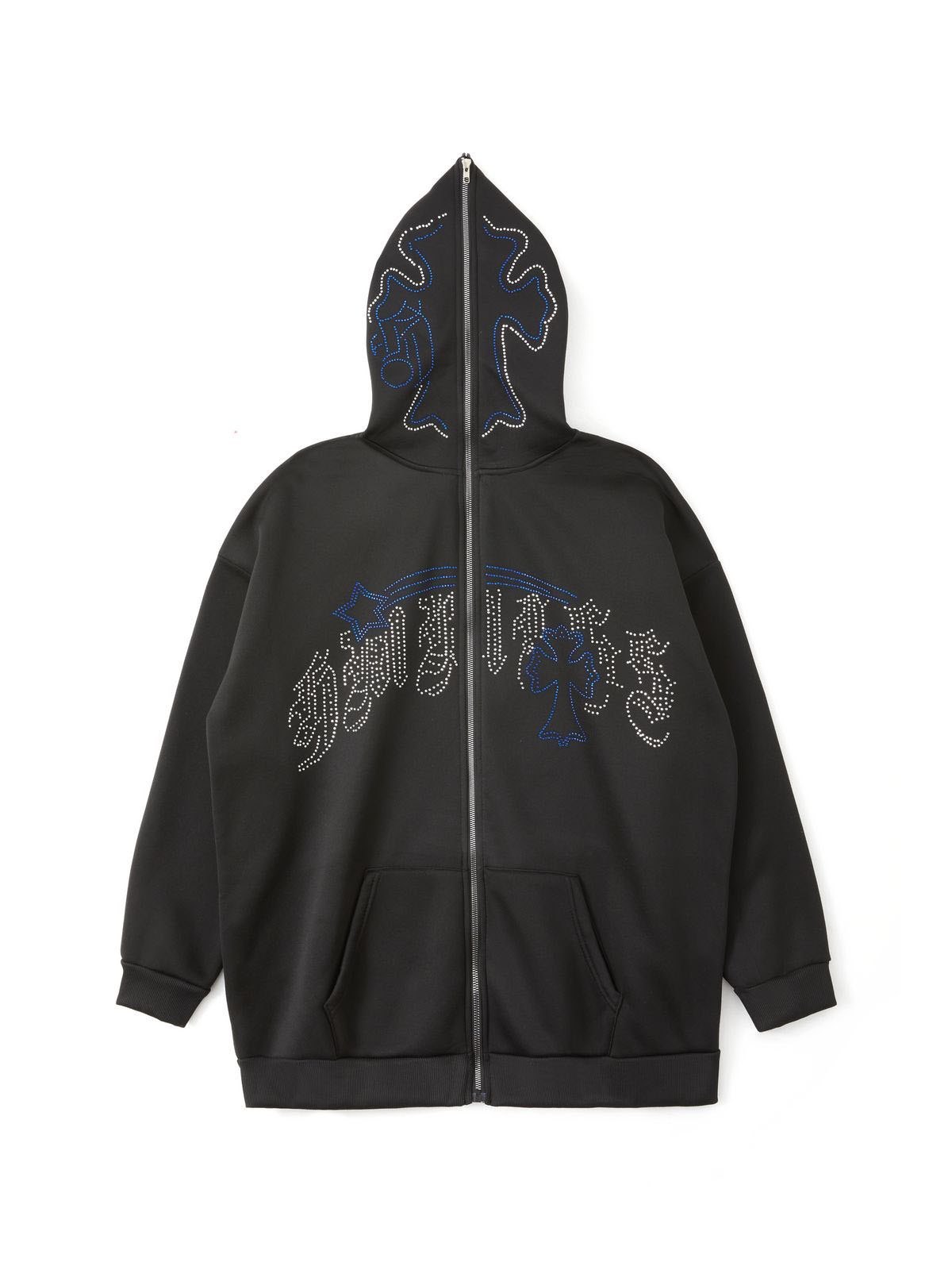 Herren-Punk-Strasskreuz-Hoodie mit Reißverschluss
