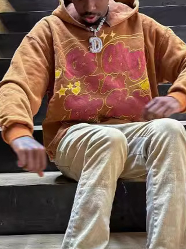 Übergroßer Kapuzenpullover mit floraler Buchstabenstickerei für Herren