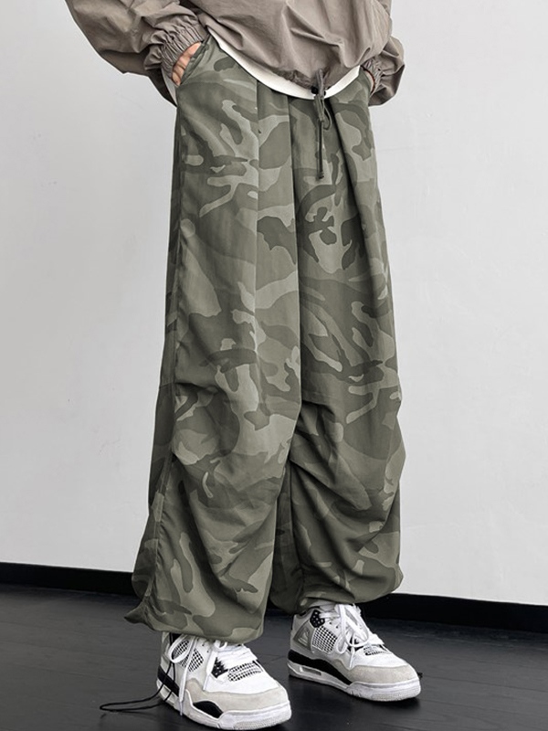 Camo Shirred Bound Feet Parachute Hose mit weitem Bein für Herren