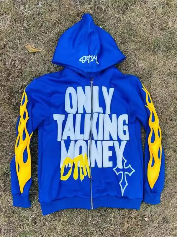 Übergroßer Kapuzenpullover mit Schaumbuchstaben und Flammen-Print für Herren