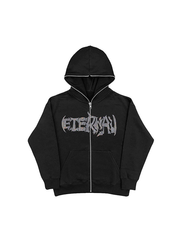 Übergroßer Kapuzenpullover mit Spinnen-Strass-Print und durchgehendem Reißverschluss für Herren