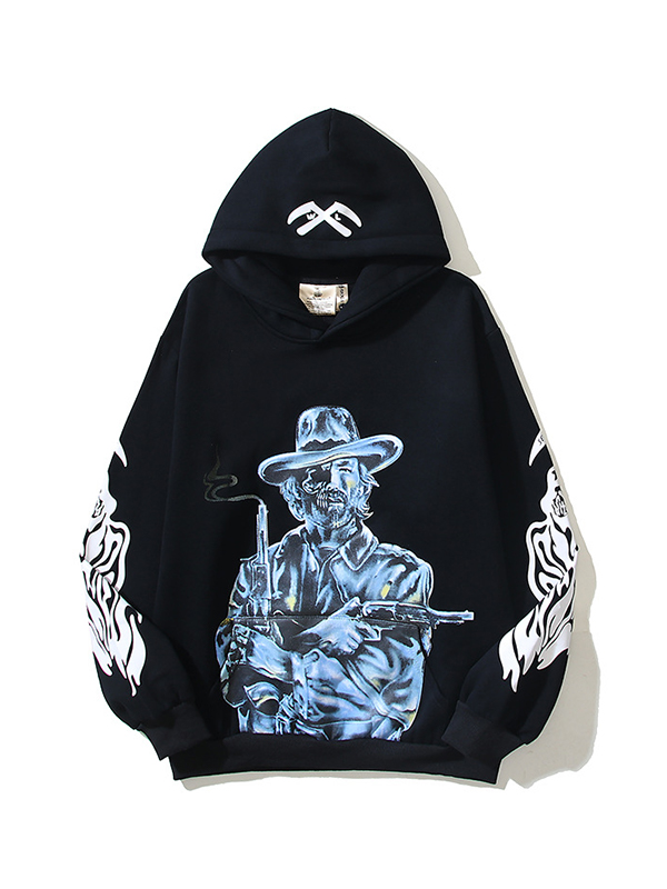 Übergroßer, langärmliger Hoodie mit „Portrait Plus“-Samt-Print für Herren