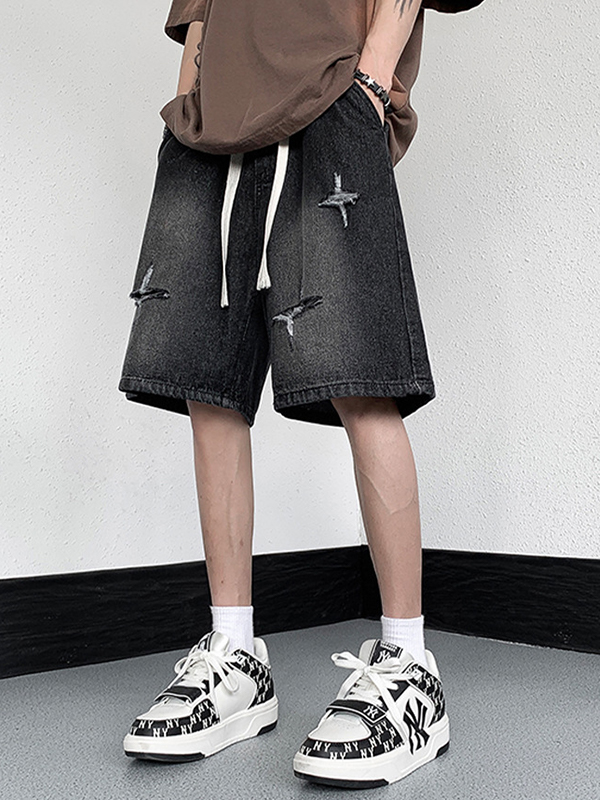 Gerade Jeansshorts für Herren mit verwaschenem, zerrissenem Schnitt