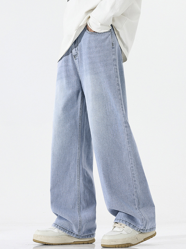 Gerade, lockere Jeans im amerikanischen Retro-Stil mit Katzenschnurrhaaren