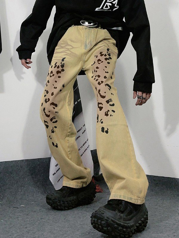 Herren-Jeans mit geradem Bein und Leopardenmuster in Vintage-Waschung