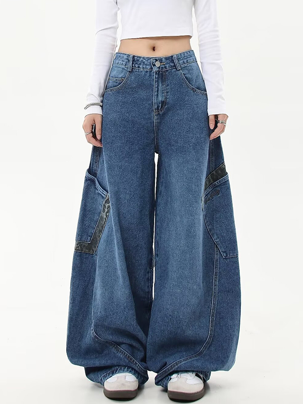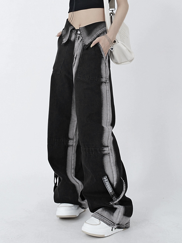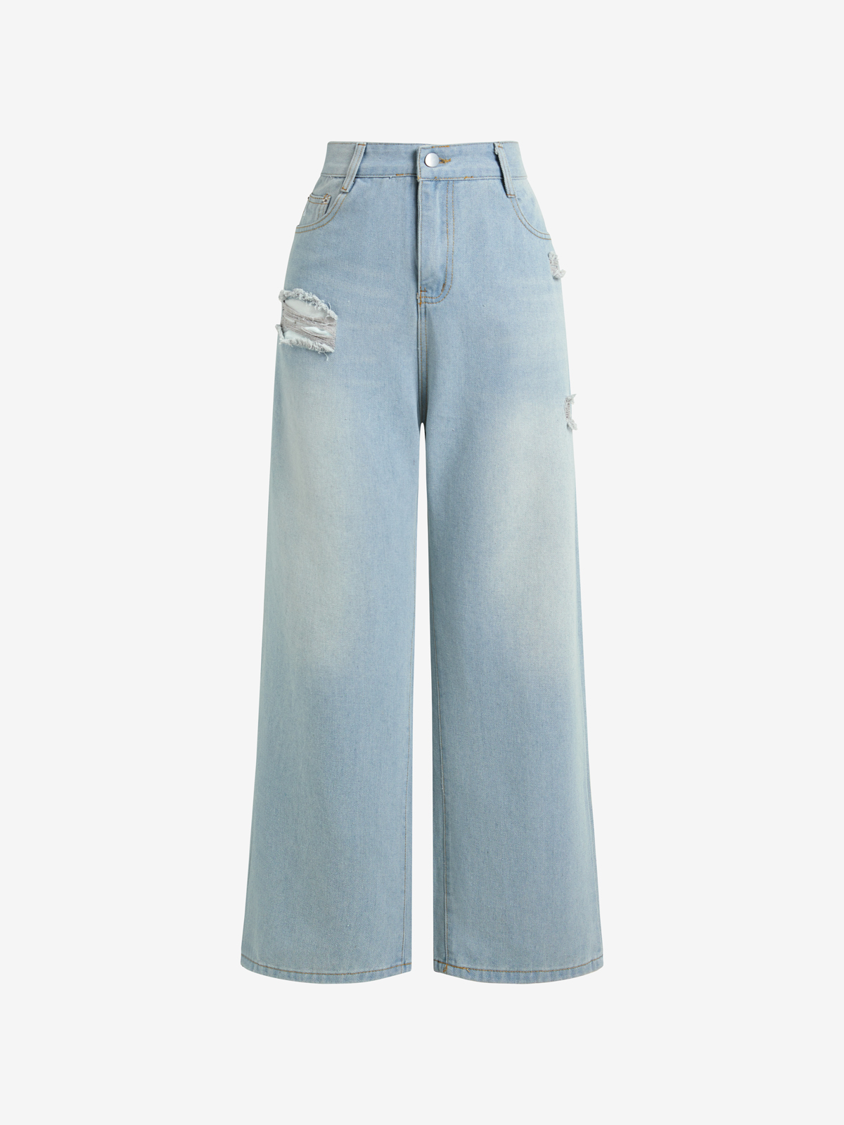Verwaschene Jeans mit weitem Bein und Raw Edge-Details