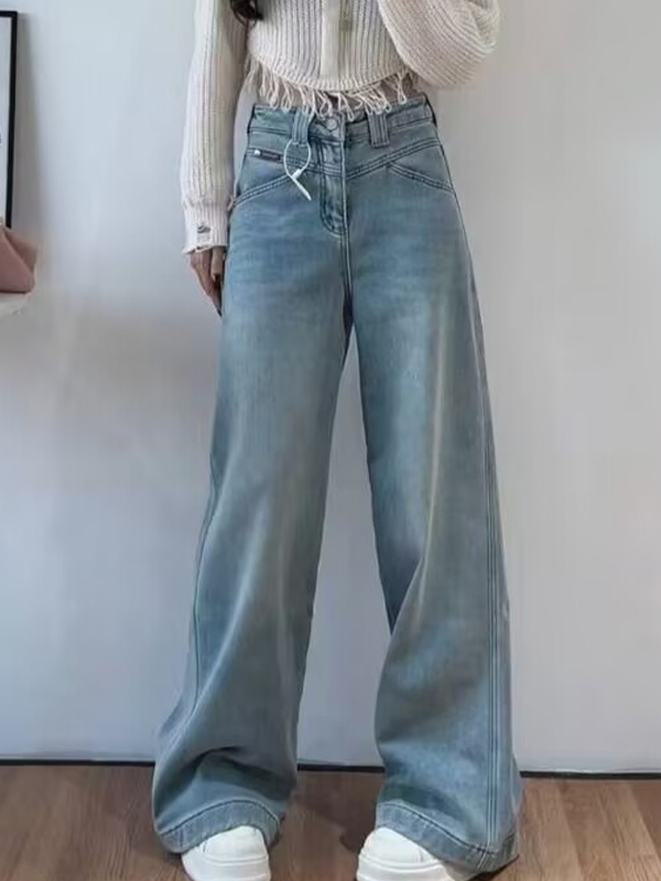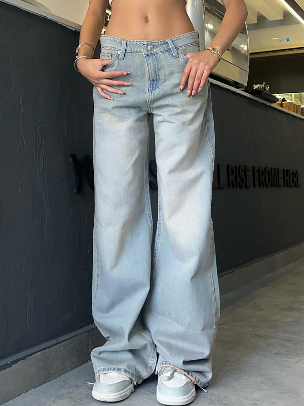 Klassische, schlichte, verwaschene, lockere Micro-Boyfriendjeans