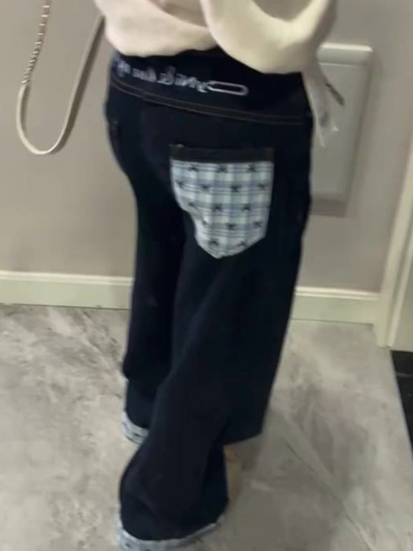 American Retro – Boyfriendjeans mit Schleife und Gittermuster