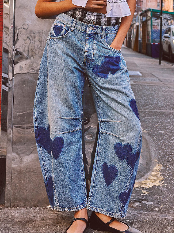 Rosa Boyfriendjeans mit Schleife und bestickter Gesäßtasche