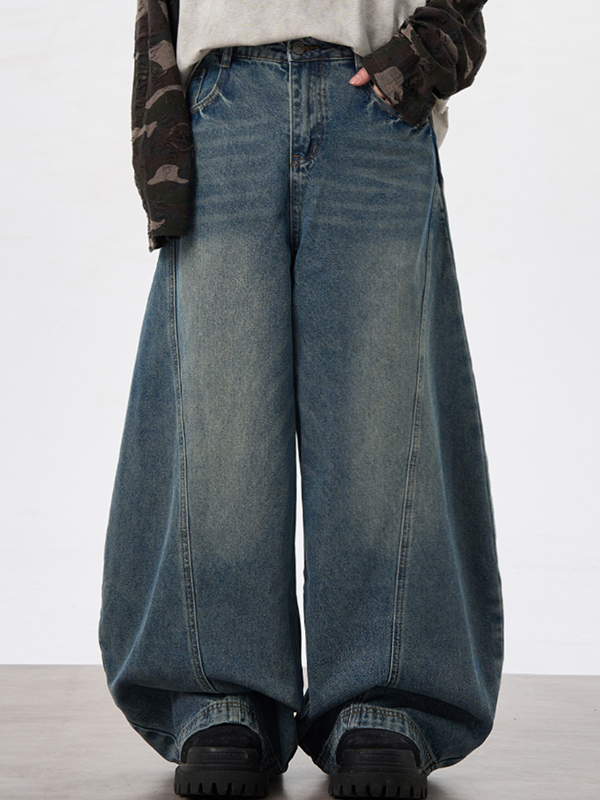Lockere, verwaschene Cargo-Jeans mit weitem Bein und unregelmäßiger Passform