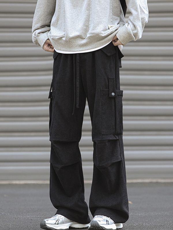 Vintage-Cargohose aus Cord für Herren mit gerüschten Taschen und baumelnden Taschen