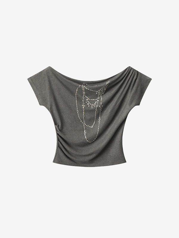 Kurzarm-T-Shirt mit One-Shoulder-Print