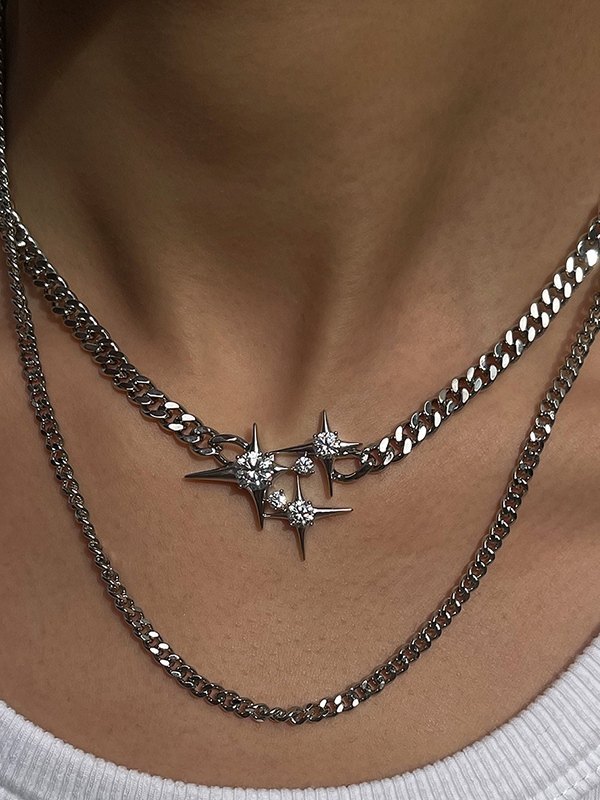 Doppellagige Kette mit Strass-Stern-Charme-Halskette