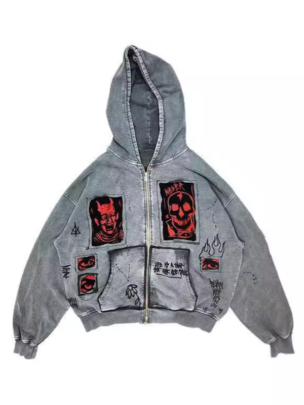 Übergroßer Kapuzenpullover für Herren mit Sternenmuster und Reißverschluss