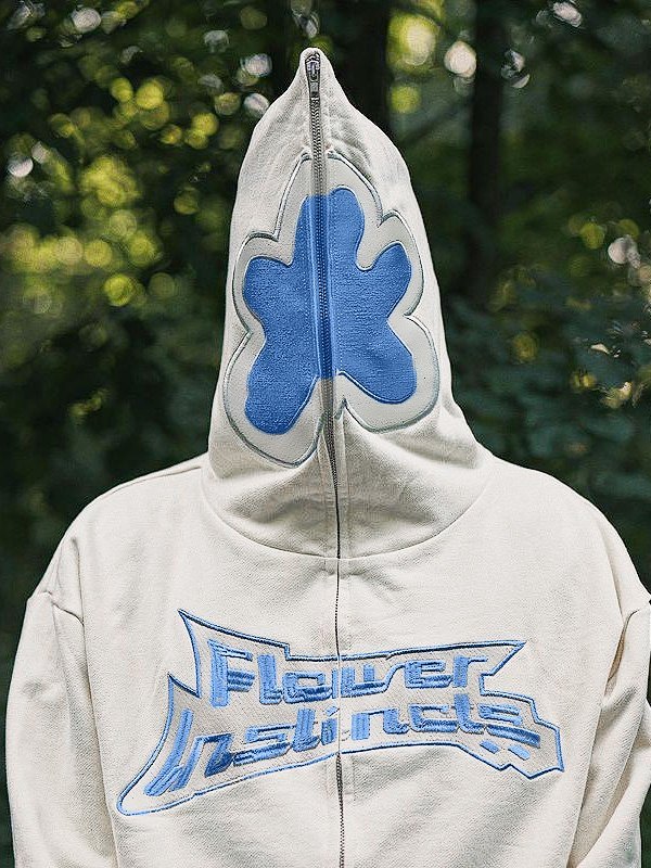 Flower Instinct Stickerei-Hoodie mit Reißverschluss für Herren