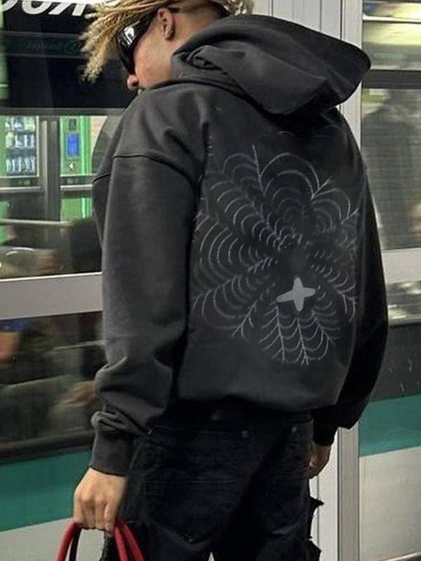 Übergroßer Kapuzenpullover mit Spinnennetz-Print für Herren