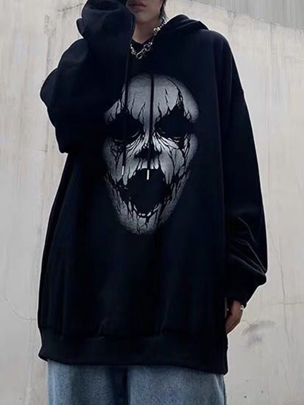 Übergroßer Kapuzenpullover mit Hip-Pop-Schädel-Print für Herren