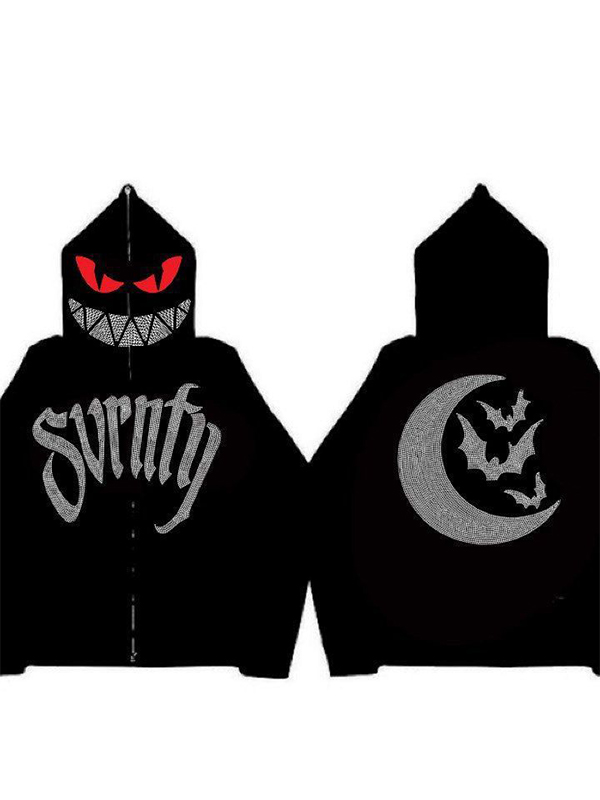 Übergroßer Kapuzenpullover mit Stern-Strass-Print und Reißverschluss für Herren